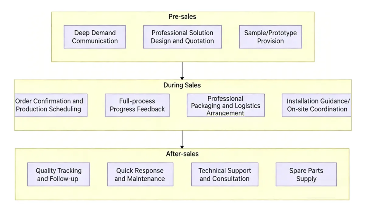 Před spoluprací vám specializovaný konzultant YeHaoXuan poskytne individuální služby, přesně vyhodnotí vaše potřeby, poskytne přizpůsobená řešení a transparentní ceny a nabídne ukázkové ukázky, které vám pomohou činit informovaná rozhodnutí.